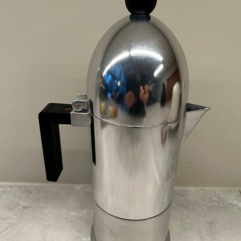 Alessi Moka Express kaffekanne i rustfritt stål. Designet for å brygge kaffe på komfyr. Klassisk italiensk espressokanne med ikonisk design.