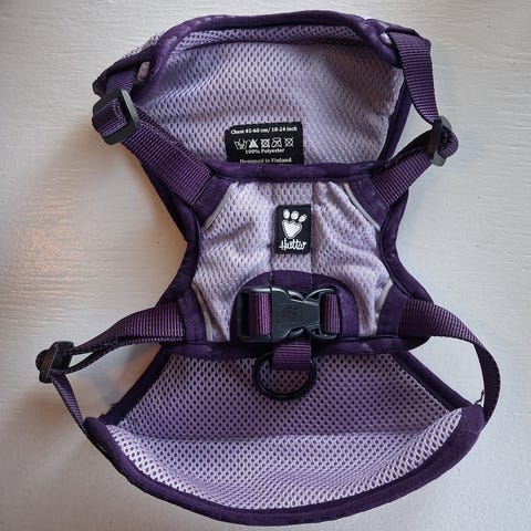 Selges på grunn av at hunden har vokst fra den. Brukt fem måneder. Selen er designet for å gi god komfort og sikkerhet for hunden under turer og aktiviteter. Materialet er slitesterkt.