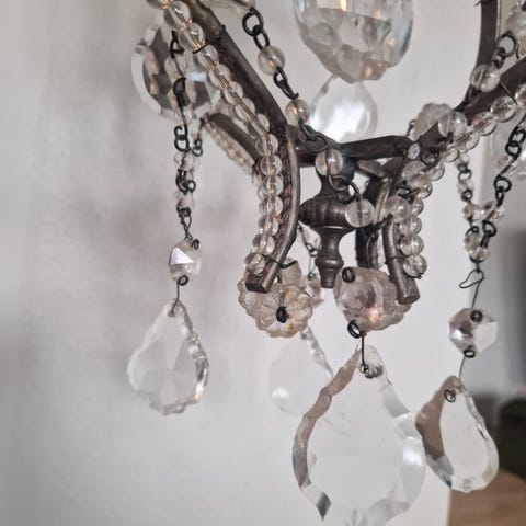 Svart skjerm, gull ananas, stikkontakt med bryter.
