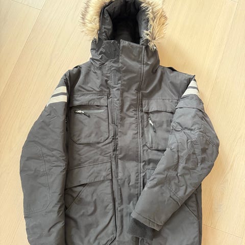 Jakken er minimalt brukt og har hengt i skapet i noen år. God kvalitet. Merket er Park Line. Er merket med størrelse M, men er nok mer en L. Mange gode lommer. Rekker til godt under baken.