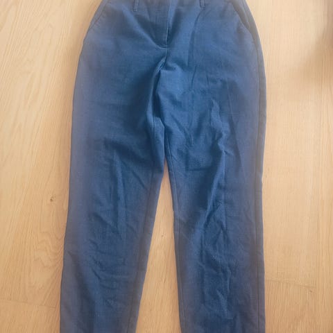 Pent brukt bukse. Modellen er høy i livet og vide ben, utrolig behagelig og pen bukse. Den er stor i størrelsen og er i modellen lang. Den har gått opp i sømmen i den ene foten, se siste bilde. Selges derfor billigere. Men det har ingenting å si for bruken.