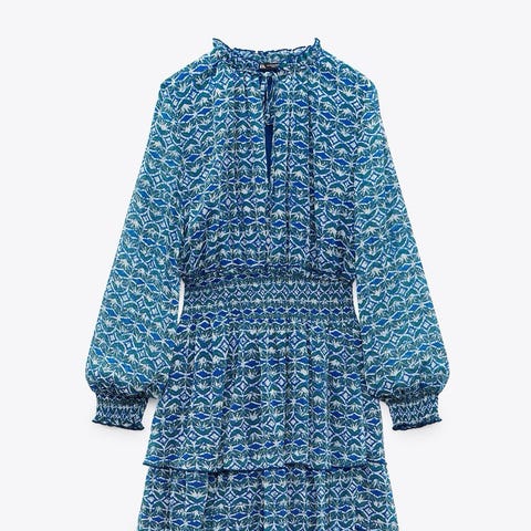 En gang brukt Zara kjole i størrelse M, selges. Kjolen har en blå farge og er designet for kvinner.