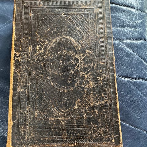 Rydder i boden etter streng beskjed fra kona. Boken kastes om ingen er interessert.