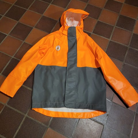 Ubrukt helt nytt doggerbank regnsett i oransje. Settet inkluderer regnjakke og regnbukse, designet for å beskytte mot regn. Materialet er slitesterkt og vanntett. Kun tatt ut av emballasje for å ta disse bildene. Ubrukt. Størrelse L. Kan sendes mot forhåndsbetaling.