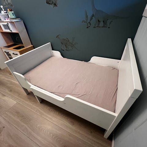 IKEA juniorseng. 3 størrelser i 1. Merket er Sundvik og er brukt av 2 barn. Den er i god stand. Madrass følger med. Pute på bildene følger ikke med. Den var med for å vise størrelsen. :) Mål L207/172/137xB92. Madrass 200x80 (3delt)