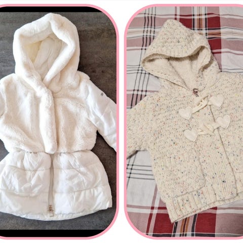 Søt og varm fuskepels jakke fra Mango i en flott lyseblå farge selges sammen bluse fra Zara. Blusen har skinnende krystaller og fine broderier, en favoritt som har blitt for liten. Begge i størrelse 140.