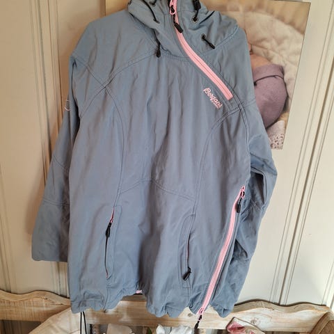 Bergans softshelljakke i størrelse 174 for jente, farge grønn. Jakken har hette og glidelåser med kontrastfarge. Materialet er mykt og egnet for utendørs bruk.