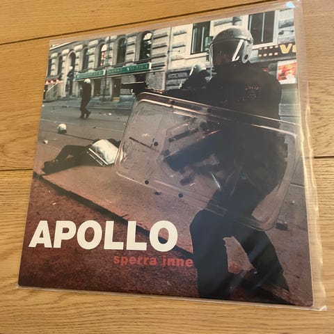 Apollo Scenario 12". Platen har en stripe på ene side, se bildet.