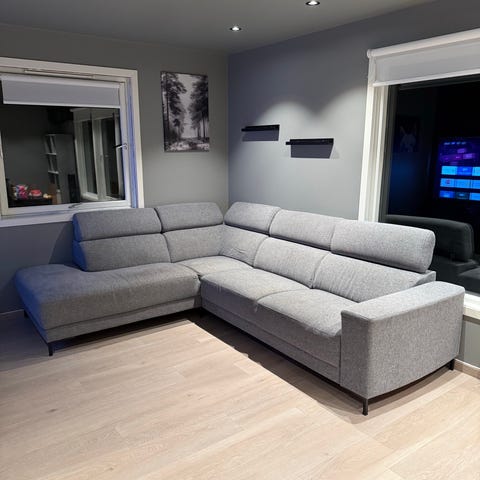 Selger en pent brukt Cleveland sofa fra Skeidar. Sofaen har en romslig storrelse med malene 234 cm i bredde, 201 cm i dybde og 80 cm i høyde, noe som gir god plass til hele familien. Den kommer i en nøytral gräfarge som passer inn i de fleste hjem. Sofaen er godt vedlikeholdt og har ingen synlige skader eller flekker, lite solbleket på baksiden av sofaen!