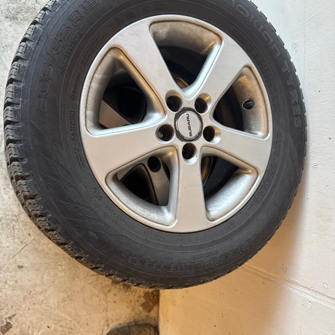 Sett med 4 hjul av subaru forrester 2005. Kjøpt piggdekk siste vinter og bare brukt 10 000km max.