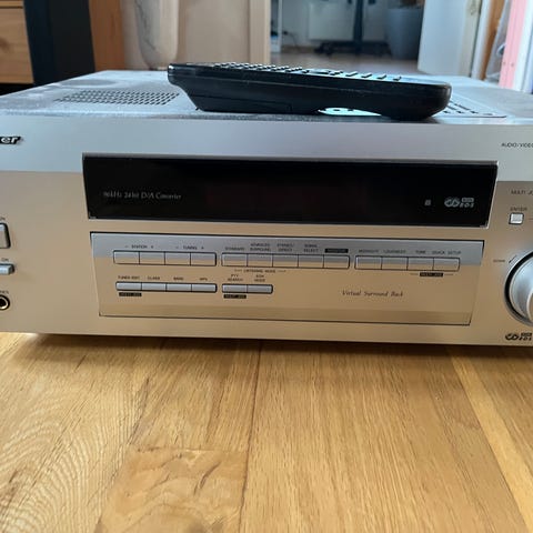 Pioneer VSX-S500 forsterker og 4 gode høytalere og subwoofer selges billig da det ikke blir brukt. Spiller bra og det er mulighet å koble telefonen til spilleren.