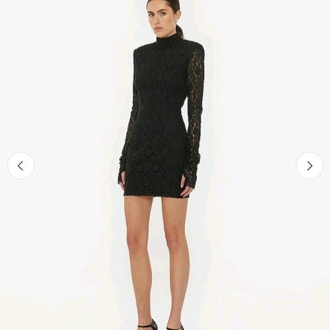 «Sequin Fringe Mini Dress har lange, smale ermer med definerte skuldre som skaper en kul silhuett. Kjolen har høy hals, kort lengde og kroppsnær passform og flatterende rynkedetaljer på skjørtet."