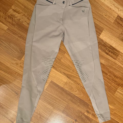 Nydelig samshield ridebukse str 36. Ser mer skitten ut på bilde enn den er, kun merker etter sal og viser ikke når man rir. Bittelitt raknet i stoffet bak uten noe betydning fortsatt helt og synes ikke. (Se siste bilde) ellers en utrolig fin og behagelig bukse, kommer ikke frem hvor fin den er på bilde.