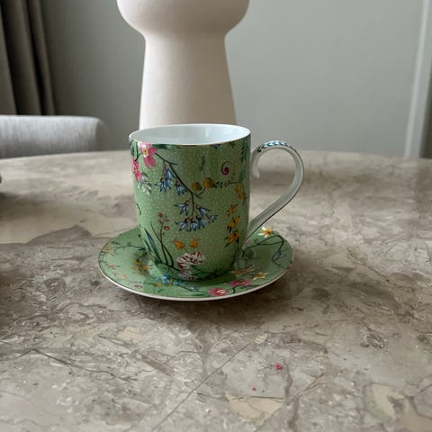 300 kr pr kurvert (en rosa kopp og en asjett).