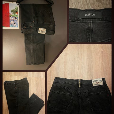 vintage Replay jeans, strøkne vintage med slimfit passform. Pent brukt og i veldig god stand. Str 33/32, dersom de er vintage er de litt mindre enn de buksene replay selger idag. Send melding om du lurer på noe😊