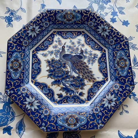 Serviettholder med speil, 2 telysholdere i sølv, en knagg og et stettfat i to høyder selges for 50 kr ting.