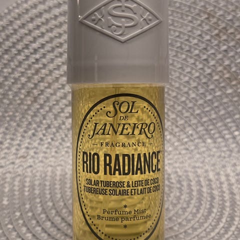 Sol de Janeiro Rio Radiance mist med en volum på 90 ml. Produktet er formulert for duft og har en gul farge. Flaske med sprayfunksjon og hvit hette.+ den har den gamle skriften