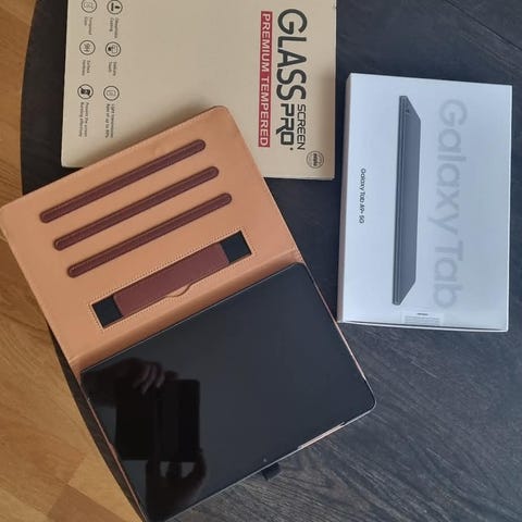Samsung Galaxy Tab A 9+ 5G nettbrett med 64 GB lagringskapasitet. Enheten har en skjerm som er egnet for daglig bruk som surfing, lesing. Leveres med original emballasje og lader kabel og deksel.