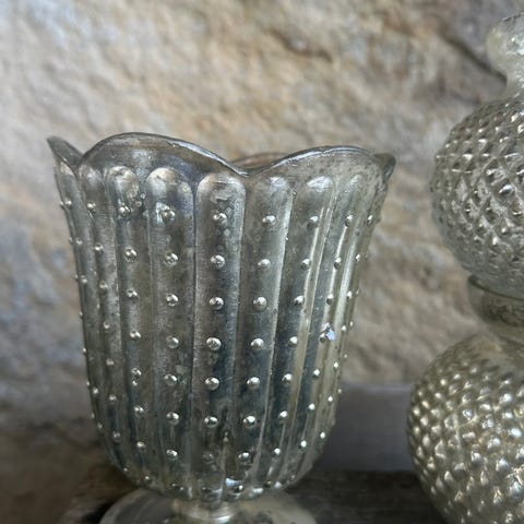 Potte /skål i fattigmannssølv /glass