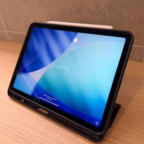 Blyanten fungerer også utmerket og fester seg på siden av nettbrettet. Litt av plasten på tuppen av blyanten har slitt vekk, men det merkes ikke når man bruker den. Dessuten har jeg satt på en Paperlike skjermbeskytter, som får skjermen til å føles ut som et ark. Den har hovedsakelig blitt brukt til studier og passer ypperlig til å ta notater med.