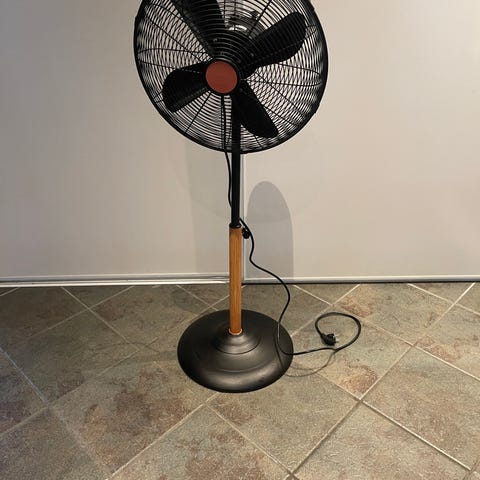 Sanyo gulvvifte i hvit farge. Designet for å gi luftstrøm og kjøling i rom. Passer for bruk i hjem eller kontor.