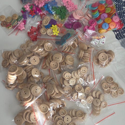 Lot med fargerike knapper. Har hatt de liggende i 20-30 år, så de er ikke nye... Selger alt samlet.