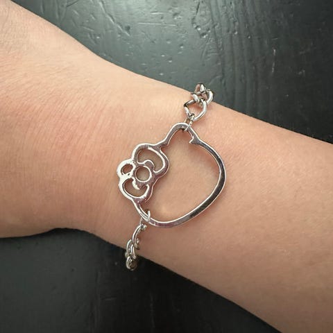 Knapt brukt hello kitty nøkkelring med fluffy rosa puff!