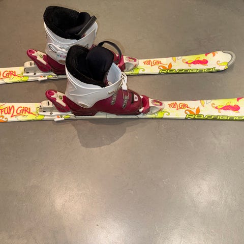 Lange skistøvler for barn i blå farge. Størrelse 18-18.5 med justerbare spenner. Egnet for barn som bruker denne størrelsen til alpinski.
