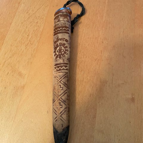 Se bilder. Slit helle merke. Trenger omsorg. Mye kniv igjen på denne. Er fiksa på slira