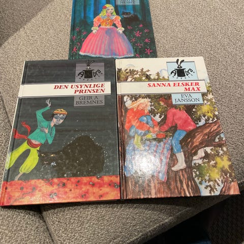 Fire bøker selges. Ingen konge i slottet, av Gunvor Kloster. Jernmannen, av TED Hughes. En helt alminnelig torsdag, av Rose Lagercrantz. Slaveliv, av Gary Paulsen.