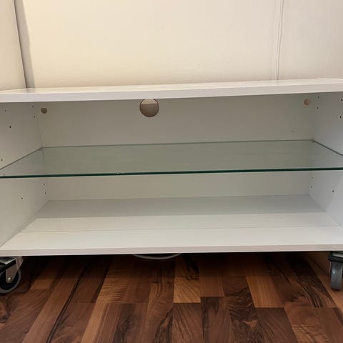 TV-benken har push-to-open dører og metall håndtak på skuffene som gir et rent og moderne uttrykk. Innvendig er det 4 separate rom, perfekt for oppbevaring av multimedia utstyr, spillkonsoller, dekodere, rutere og annet tilbehør.
