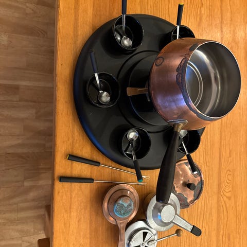 Den er aldri blitt brukt. Varmeplate har justerbar varme, og plugges inn i stikkontakt. Gryten er laget av stål, holder godt varmen og varer lenge. Så her trenger man verken rødsprit eller flammer🤩