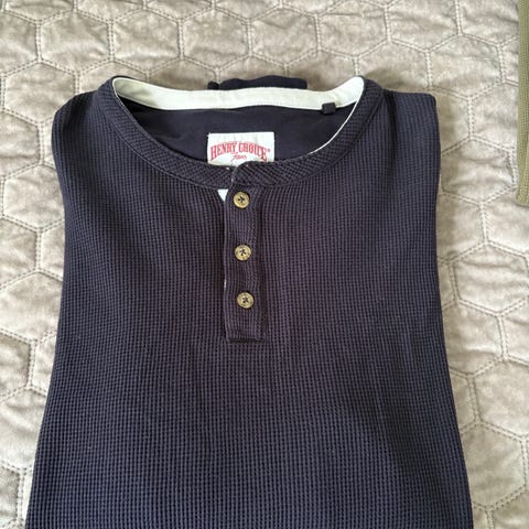 Le Laureat genser for herre i størrelse L. Genseren har et blått og grått mønster og er laget i et materiale som gir varme og komfort.