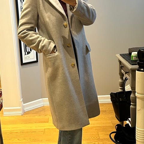 Mørkblå lang kåpe i 100% ull fra det italienske merket Oui. Den er i Str M og har både knapper og belte i livet. Den er aldri brukt, og lappene, samt en ekstra knapp følger med❣️ Nypris 4999kr, åpen for bud
