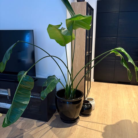 Strelitzia Nicolai stueplante med store grønne blader. Passer som innendørs plante for dekorasjon og forbedring av inneklima. Måler 140 cm fra gulv på det høyeste . Litt nedfor for han har hatt for ute lys siste måneden men kommer seg kjapt ! Potte får du med også kr 400