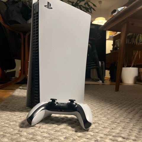 Følger med 2 kontrollere, fjernkontroll og ladetårn.