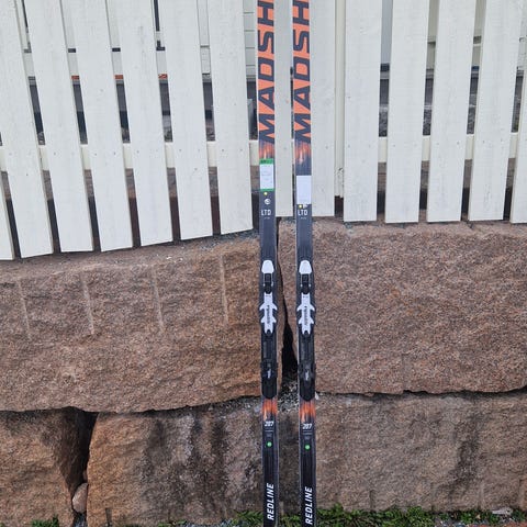 Madshus Redline 3.0 Classic cold langrennsski med Rottefella Xcelerator Pro Classic binding selges. Spenn tilpasset løper på 50-60kg.