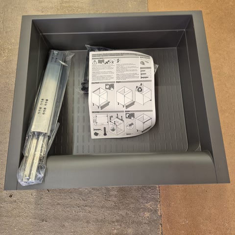 -Utrekkbar skuff over beholderne. Må ikke monteres hvis man vil ha stort åpent rom til hyller eller annet.