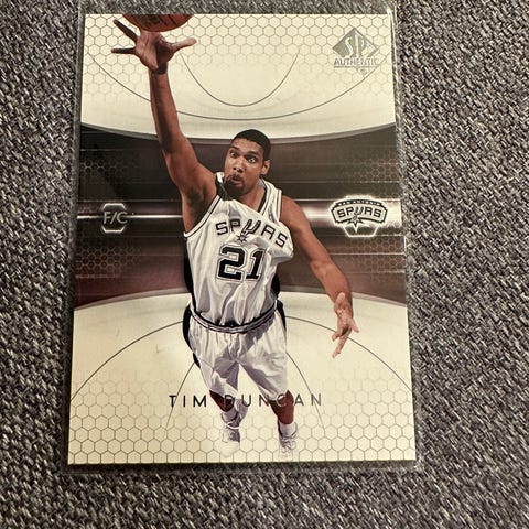 Selger en samling med basketballkort.