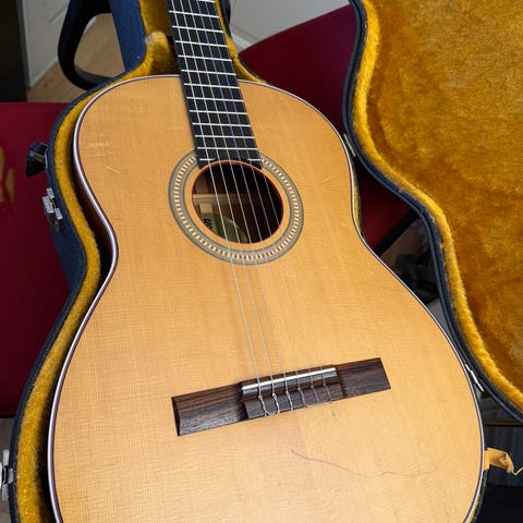 Selger en svært pent brukt brasiliansk Di Giorgio Vibrante fra 1972. Kvalitetsgitar i heltre som er profesjonelt satt opp, lettspillet og med god lyd. Kommer uten koffert, men har gitareske til den dersom ny eier ønsker den trygt tilsendt som Norgespakke med posten (kr 140).