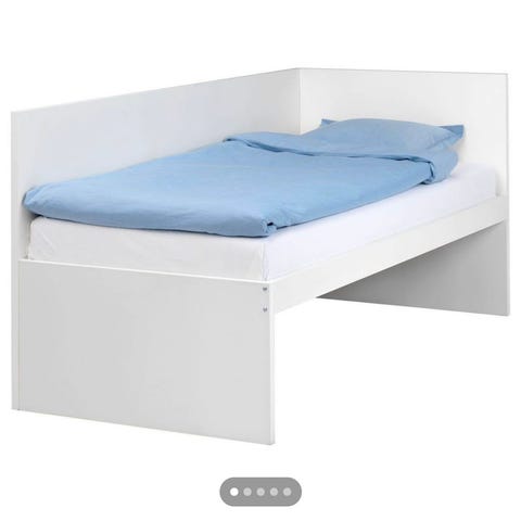 52 cm høy, 200 cm lang og 75 cm bred. Pent brukt gjesteseng.
