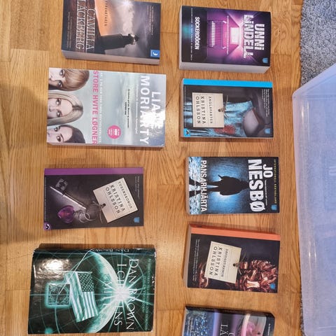 Pakke med ti bøker/romaner fra ulike forfattere: