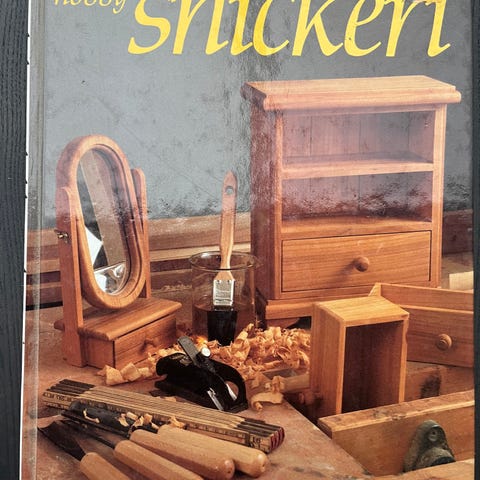 Selger en pen innbundet bok av Tom Skånsar Borgersen med tittelen: "MØBELSNEKRING - etter gamle forbilder". En bok i snekkerverkstedet.