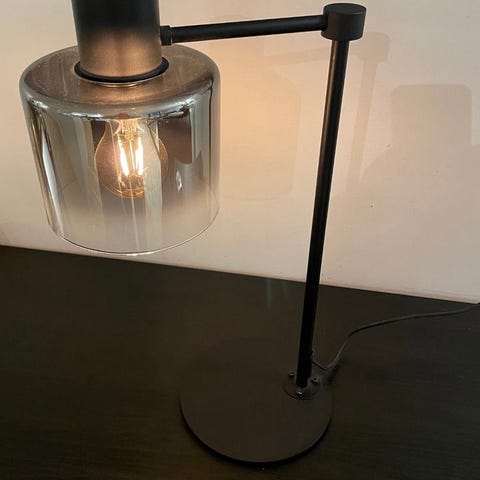 Liten lampe i gullfarge selges da den ikke blir brukt lenger. Støpselet der man fester pæra er skeiv (som kan sees på bilde). Ellers er det noen vanlige bruksmerker.