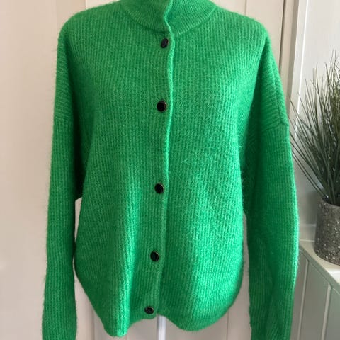 Pent og lite brukt Gestuz Debbie cardigan i str L selges. Sandfarget/beig/lys brun. Mohair 34% /ull 34 % /polyamid 28 % blanding.