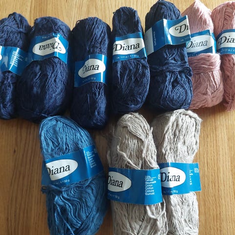 200 g kabel-tvunnet, blått mercerisert bomullsgarn 12/6. Fint til både strikking og hekling.