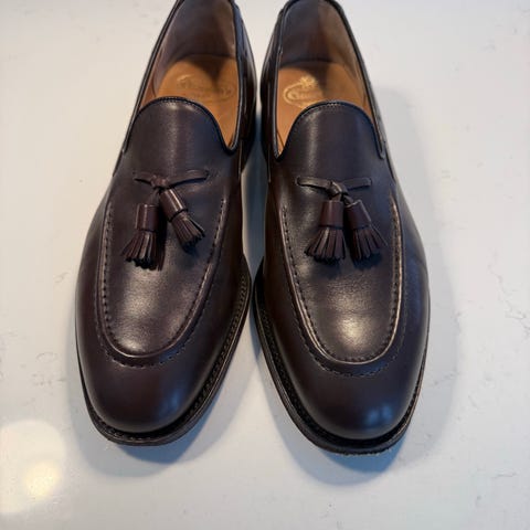 Normal slitasje på lærsåle. se bilder. Selges svært rimelig uten skotte inkludert. Kommer med eske.