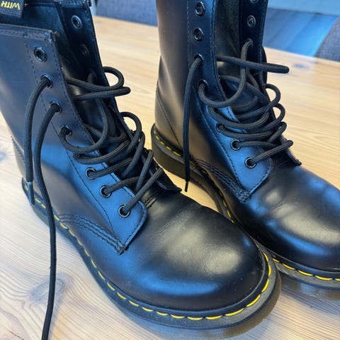 Doc martens doctor doktor sko skoletter støvletter støvler knyting snøre pels kunstpels