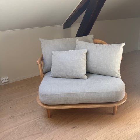 Nydelige stoler. Nesten nye vurderes solgt samlet. Karakorum stoff, oljet eik