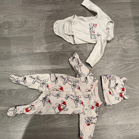Pent brukt julesett i størrelse 56. Kun brukt av ett barn, alt var nytt til babyen min sin første jul.